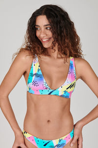 Plus, it's not just eco-friendly, but also features a fun 80's inspired print - Saved By The Bell. With playful colours like bubble gum pink, turquoise, and sunshine yellow, you'll be the life of any pool party.
