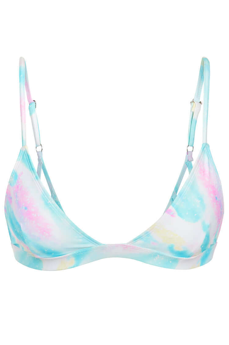Tide + Seek take on the must-have simple triangle bikini top. This triangle top provides a timeless, beautiful look with its classic triangle shape but has a cheeky twist with its unique back style.